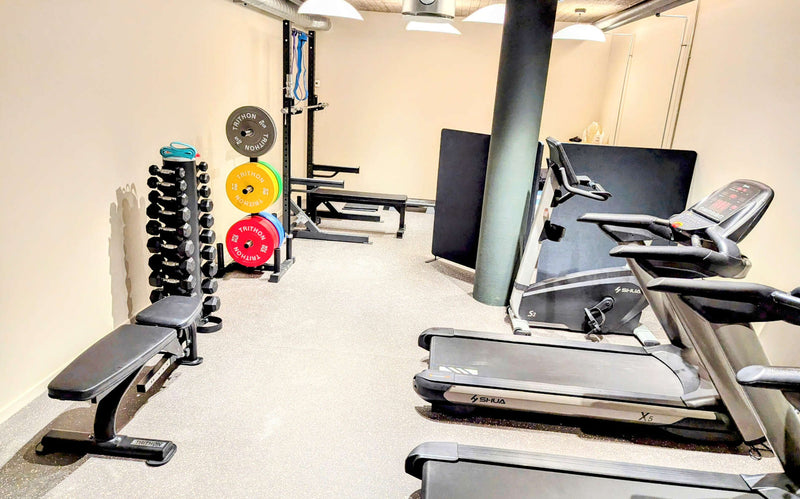 Se det træningsudstyr vi har sat op i kundernes fitness rum. Vi kan sætte motionsrum op i alt fra små rum på 50 kvm til større rum på 200 kvm og mere.
