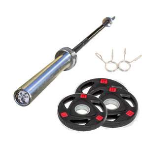 Vægtstangen er vores populære Beater Bar, der vejer 20 kg, har et perfekt 28 mm greb på stangen og 50 mm kraver til vægtskiverne.