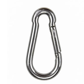 Karabinhage i rustfri stål, beregnet til at sætte i fitnessmaskinernes kabeltræk, hvor man kan montere diverse håndtag