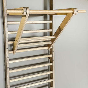Pullup bar til træ ribber i universal design, der passer alle ribber. Ribben er håndlavet i træ i EU og kan bruges til pullups eller hænge slyngetrænere og gymnastikringe op i den.